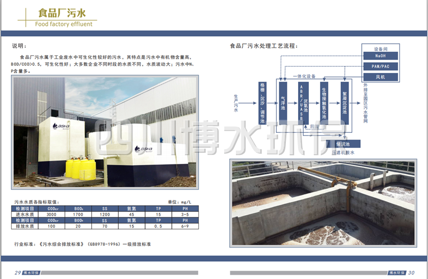 1.1 食品加工廢水主要有洗料水、浸泡水、漿渣分離水、壓濾水、各生產工藝容器的洗滌水、地面沖洗水、生產廠區生活水等;