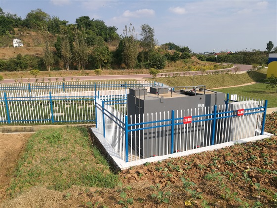 污水經(jīng)流經(jīng)格柵(人工格柵),柵條間隙為2mm,撈除大顆粒的懸浮物及雜質(zhì)后流入調(diào)節(jié)池內(nèi),在調(diào)節(jié)池內(nèi)進行水質(zhì)、水量調(diào)節(jié),由污水提升泵將污水提升至缺氧池,缺氧池內(nèi)有反硝化菌,可將回流硝化液中的硝態(tài)氮、亞硝態(tài)氮還原為氮氣,以確保排放水的總量達(dá)標(biāo)。經(jīng)缺氧池后,污水流入MBR池,池中的高濃度活性污泥在風(fēng)機持續(xù)供氧的作用下講解污水中的有機污染物,使污水達(dá)到排放標(biāo)準(zhǔn)。MBR池內(nèi)的一部分硝化液回流至缺氧池進行反硝化,降解后的污水在抽吸泵的作用下通過膜片的微孔排出,通過紫外消毒設(shè)備滅殺水中致病菌后進入清水池,水中活性污泥則被膜片截留在MBR池內(nèi)繼續(xù)降解污水中的污染物。清水池內(nèi)的中水由提升泵送至回用水箱或外排。